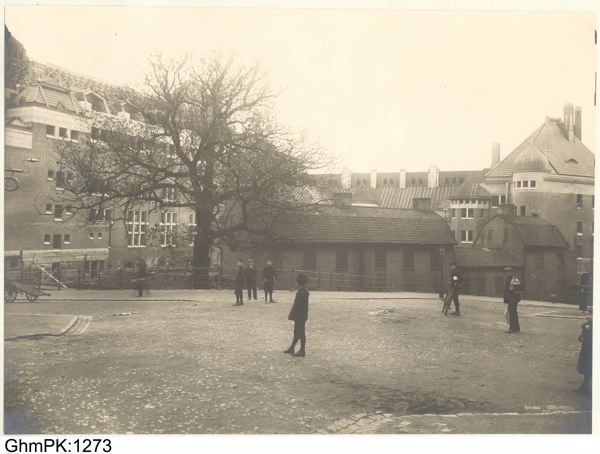 Telegrafverkets nybyggnad. I förgrunden Kaserngränden med de sista kvarstående byggnaderna av Borgerskapets kasern.