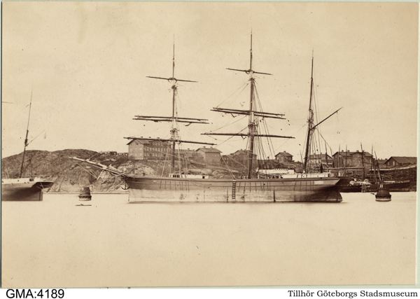 Skatberget ("Skaddeberget") sett från älven i höjd med "Hacket" i Masthuggskajen. T.h. Lindholmens mekaniska verkstad.