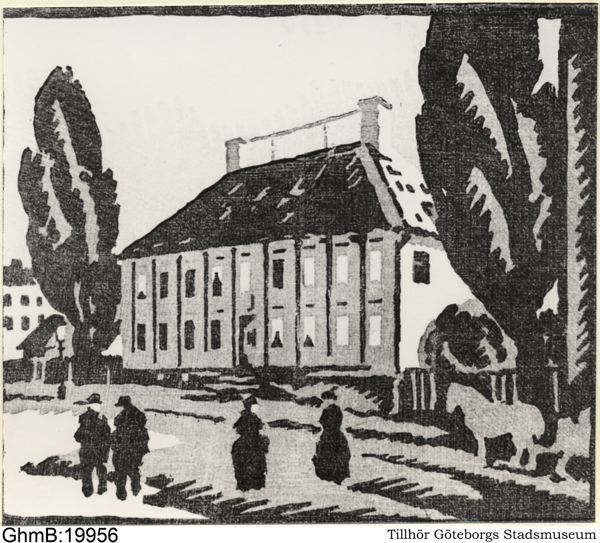 Gathenhielmska huset. Träsnitt daterat 1917. Mått: 37,5 x 34,5 cm.