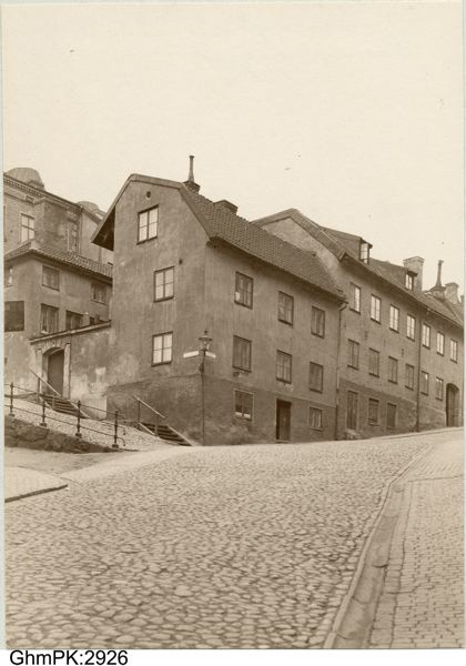 Södra sidan av Norra Liden med Skräddarnas härbärge år 1912.