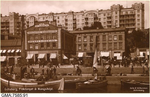 Vykort poststämplat 1918 föreställande Rosenlundsplatsen, f.d. del av Fisktorget