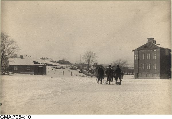 Djurgårdsplatsen. Till vänster Majornas 3 rote, nr 103, till höger Djurgårdsplatsen 2 x Djurgårdsgatan. Vy mot nordväst.