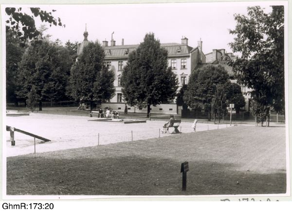 Lekplatsen vid Rygatan x Carl Grimbergsgatan (f.d. Haga Kyrkogata). Vy mot Seminariegatan från Rygatans övre del.