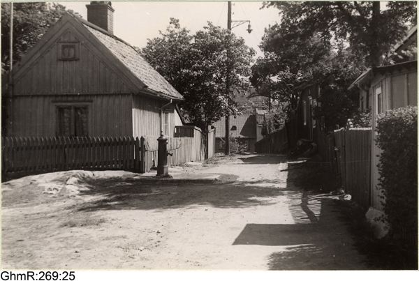 Ankargatan, nedgång åt Oljekvarnsgatan - bild åt öster. Närmast till vänster Majornas 3 rote, nr 55.