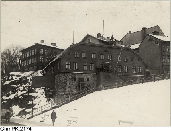 "Det Göteborg som går". Hus som skall rivas för kajens utvidgning. Norra sidan av Stigberget.