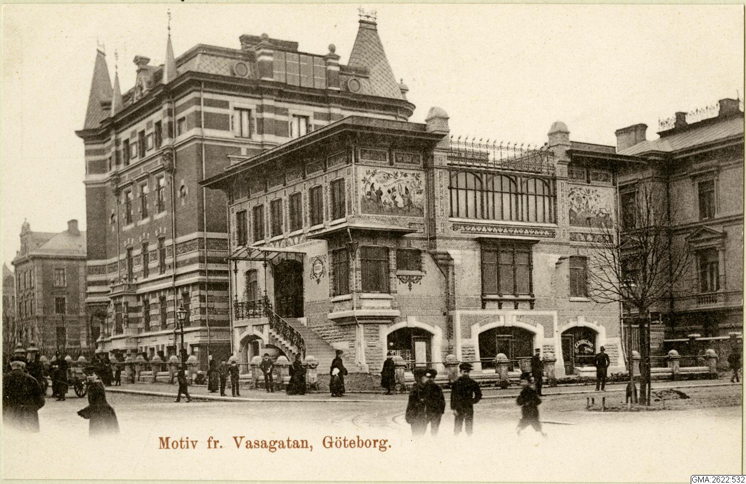 Korsningen Vasagatan och Viktoriagatan, med Vasagatan 11, Tomtehuset i fokus