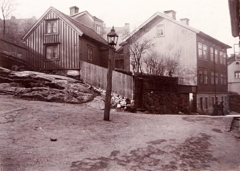 Klamparegatan, t.v 26 och sedan nr. 28. Majornas 5 rote, nr. 145 vid hörnet Hobergs Trappor.