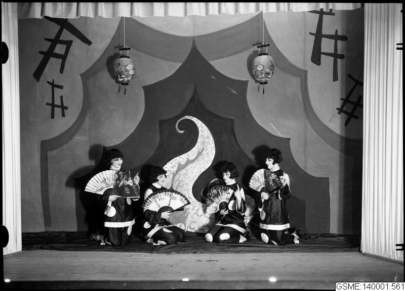 Beskrivning: Amatörsalongen troligen Nya Teatern. Okänd föreställning. I B-salen vid Mellangatan huserade på lördags- och söndagskvällar Carl Johanssonska teatersällskapet som kallade sin scen Amatörsalongen