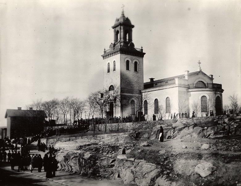 Karl Johans kyrka, sedd från Allmänna Vägens mynning. Bild tagen efter konfirmation.