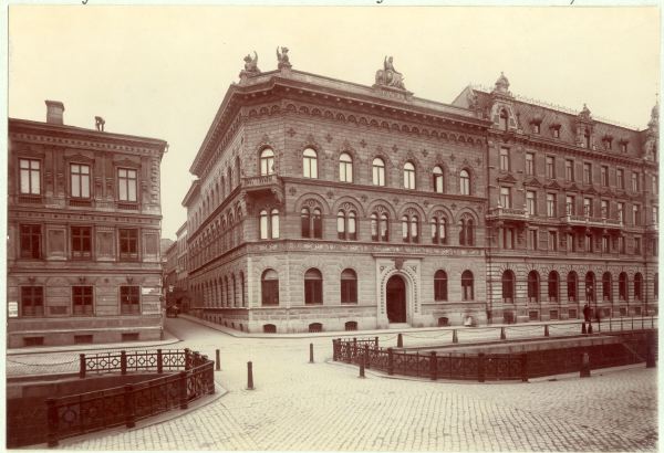 Brand- och Livförsäkringsbolaget Sveas och Enskilda Bankens hus, det förra färdigt 1888, det senare 1889.