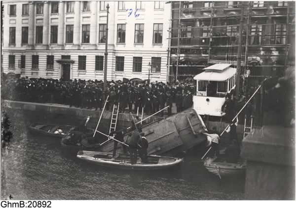 Foto från spårvagnsolyckan vid Kämpebron d. 9/9 1905.