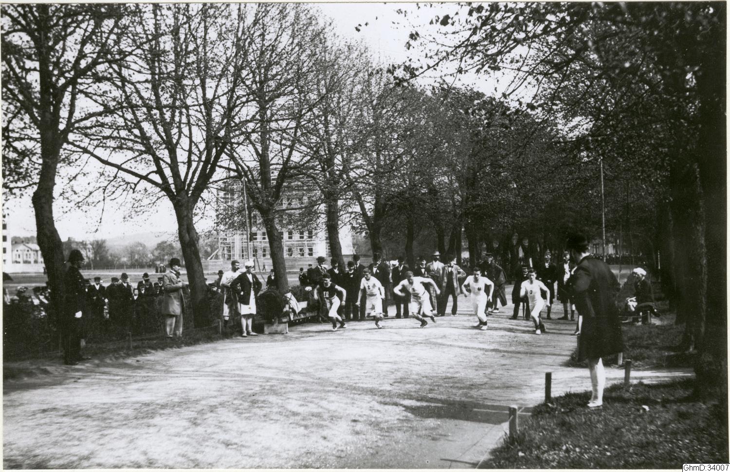 Löpartävling med hastighetslöpare, på distsansen 150 m, i Gamla Allén, 1894