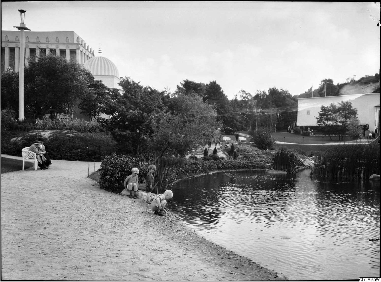 Näckrosdammen, Jubileumsutställningen 1923. Till vänster Minneshallen och till höger Konstindustriutställningen.