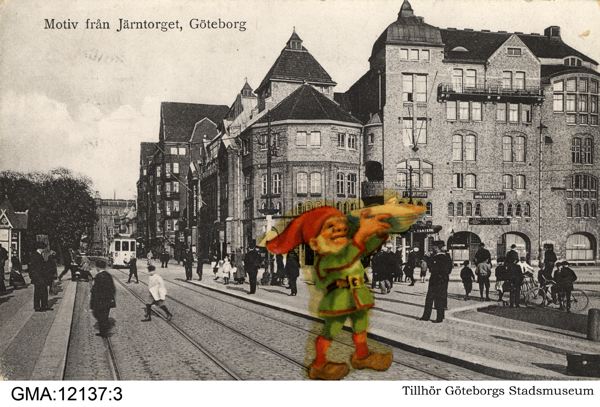 Järntorget mot öster med Arbetareföreningens hus. Tomte påklistrad.