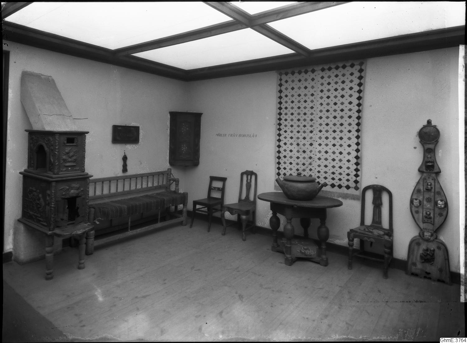 Interiör från Allmogeutställningen, rum 37. Möbler från Bohuslän, Jubileumsutställningen 1923.