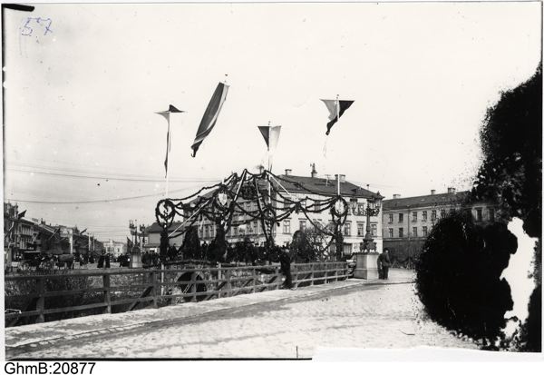 Foto taget 28-30/3 1898 i samband med Oscar II:s besök inför sjösättningen av pansarbåten Niord vid Lindholmen varv.