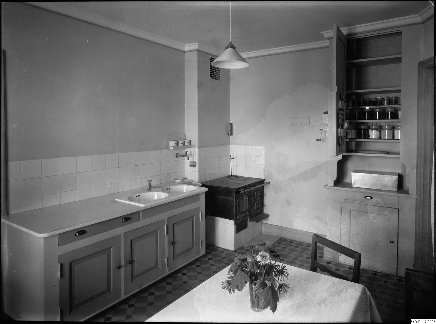 Bostadsinteriör, kök i lägenhet om 2 rum och kök. Rum 127, Föreningen Hus och Hem, Utställning av smålägenheter, Jubileumsutställningen 1923.