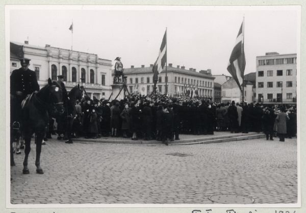 6 november 1936, skolorna samlas på Gustav Adolfs torg.