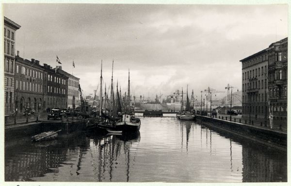 Beskrivning: Stora Hamnkanalen mot älven, sedd från Kämpebron.