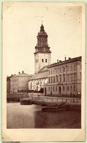 Norra Hamngatan. Fr.h. Rådhuset, Kristine kyrka samt nr. 14 o. 12 (Göteborgs Museum).