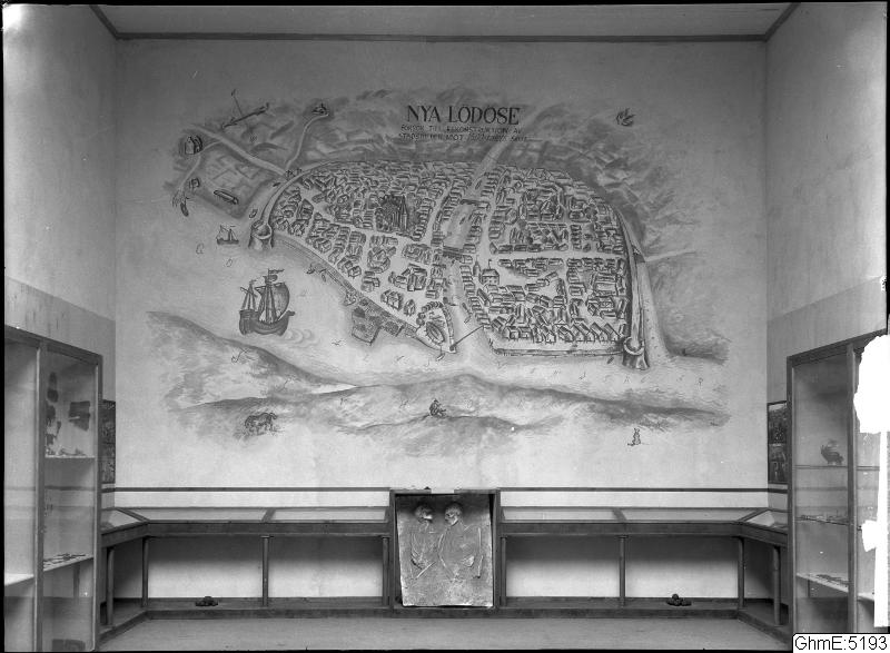Jubileumsutställningen 1923. Arkeologiska avdelningen. Målning Nya Lödöse.