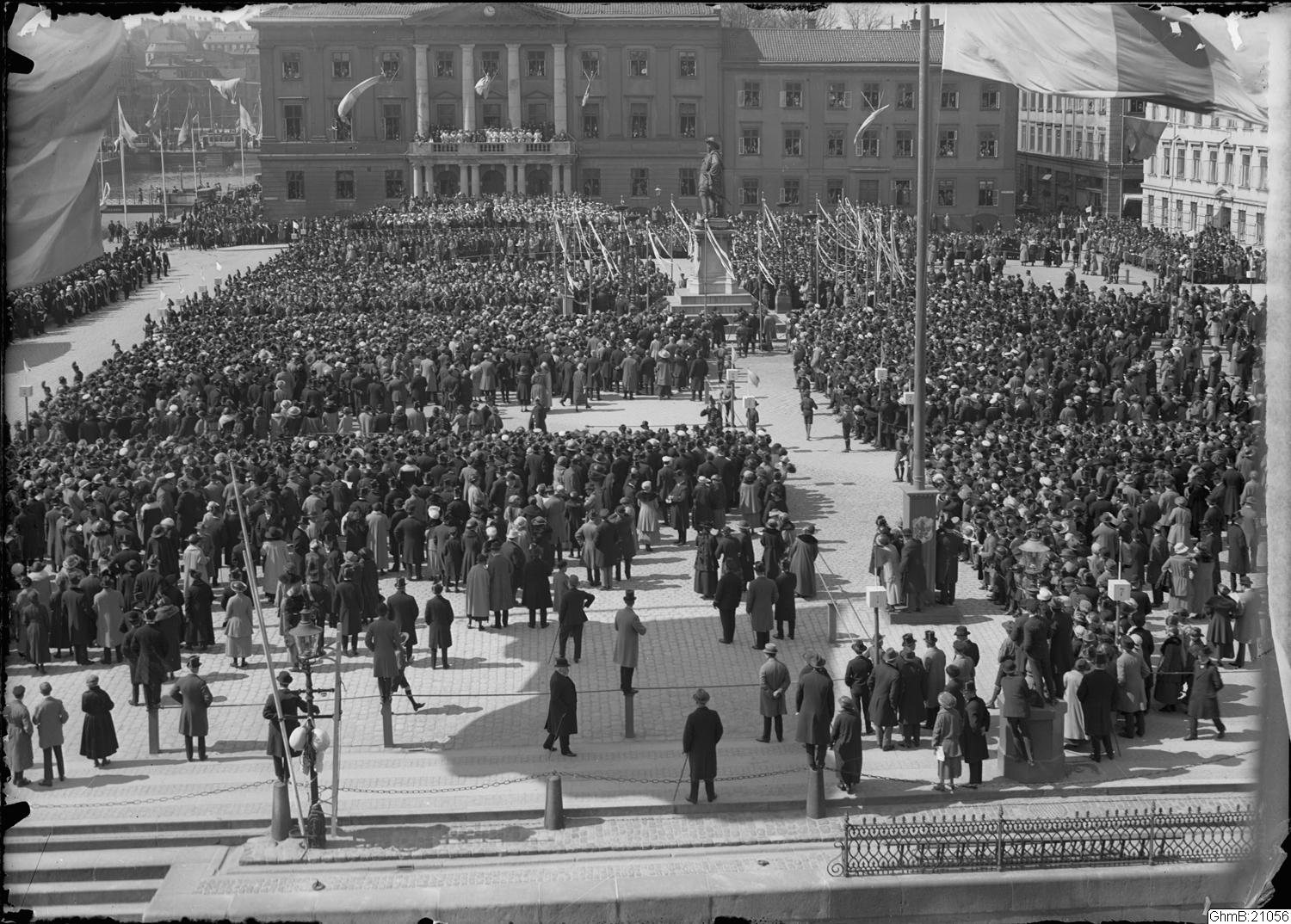 Öppningshögtidligheterna för Jubileumsutställningen den 8 maj 1923 på Gustaf Adolfs torg.