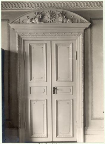 Dörr av skulpterat trä. 1800-talets början.