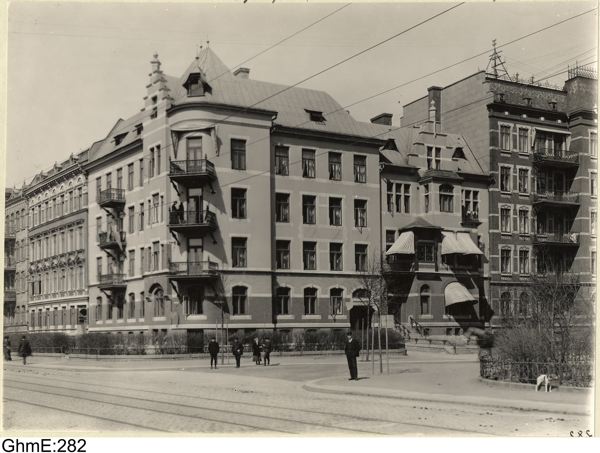 N.O. hörnet Berzeliigatan - Södra Vägen 1908.