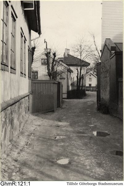 Från vänster Gröna gatan 11 B, 11 A och 11. Majornas 1 rote, nr 236, 237 och 238-239.