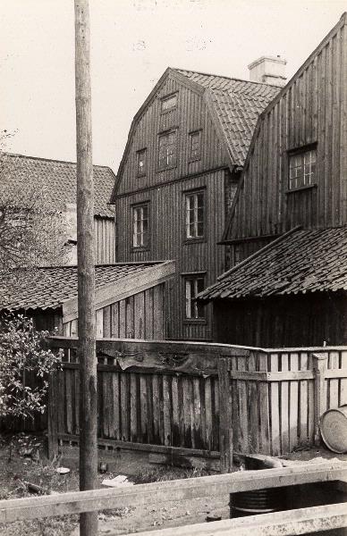 Karl Johansgatan 75.Gårdsinteriör med bilverkstad och smörjgrop. Gavlar åt norr. Längst t.v. del av Majornas 2 rote, nr 18.