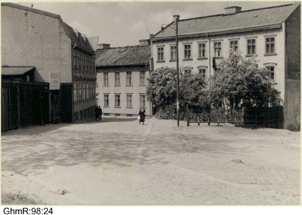 Bergsgatan, parti sett från hörnet av Kaponjärgatan mot väster. Från vänster, nr. 17, 12 A (x V. Skansg. 14) samt 12 B.