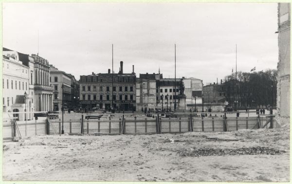 Östra Hamngatan 30 (f. v. i fonden) T. h. därom tomtplats för nr. 32 - 34 sedan dessa rivits. Sett från Kommendantshusets tomt över Gudtav Adolfs torg.