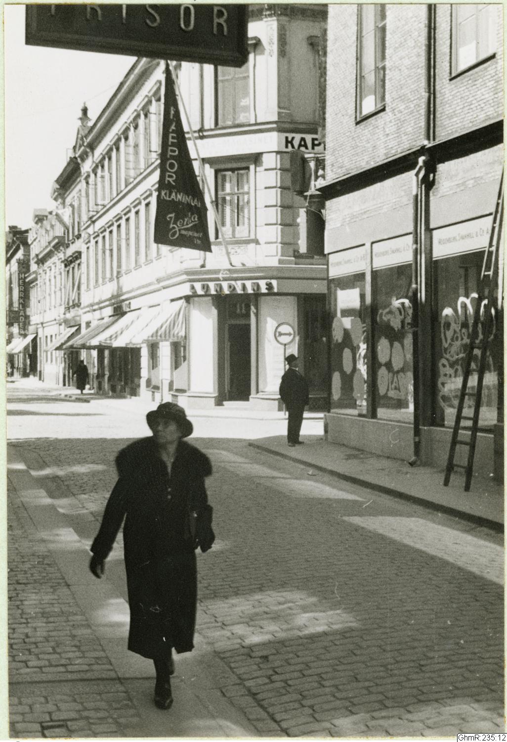 Beskrivning: Kyrkogatan 32, "Lundins", sedd från sydost från Kyrkogatans södra trottoar.