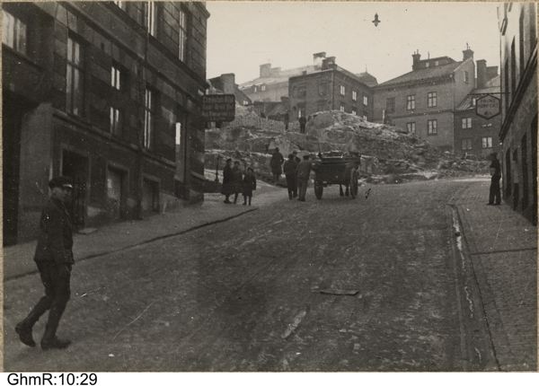 Norra Liden mot väster sett ung. från Magasinsgatan. Skräddarehärbärget, Norra Liden 5 (=Stadens 4 rote, nr 85) samt närliggande fastigheter raserade.