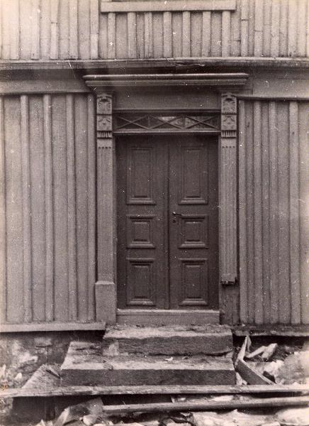 Portal till hörnhuset Karl Johansgatan-Klippgatan med adress Klippgatan 8. Huset under rivning. Hus vid f.d. Allmänna Vägen.