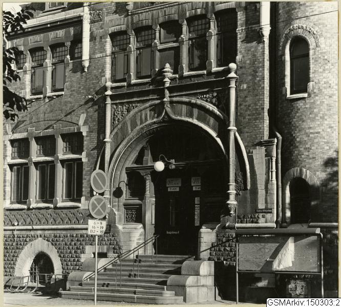 Porten till F d Dicksonska folkbiblioteket,invigt 1897, ett av de första folkbibliotekeni norden.1967 flyttade verksamheten till det nya stadsbiblioteket vid Götaplatsen.