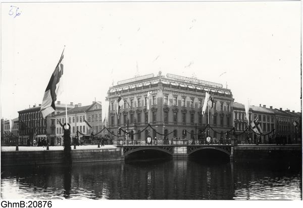 Foto taget 1898 28-30/3 i samband med Oscar II:s besök inför pansarbåten Niords sjösättning på Lindholmens varv.