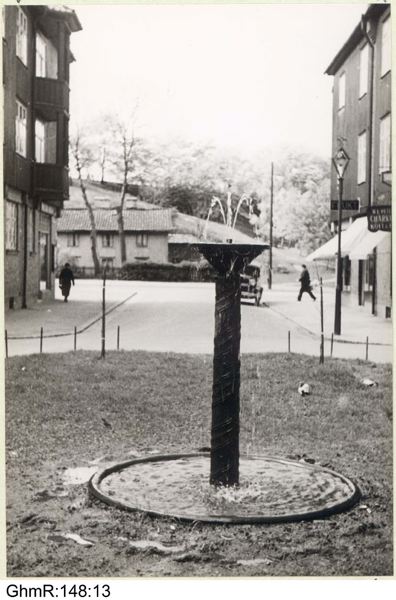 Uddevallaplatsen mot väster. Fontänen. I bakgrunden till vänster Ånäsvägen 22.