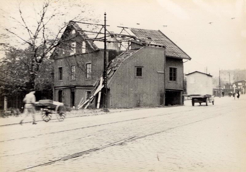 Huset Klippgatan 8 mot Karl Johansgatan sett fån sydväst.Huset under rivning. Hus vid f.d. Almänna Vägen.