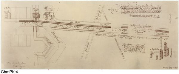 Planritning över den s.k. Fattighuskanalen mellan Mölndalsån och Stora Hamnkanalen i Göteborg. Arbetet börjades 2/6 1640 och fullbordades 23/9 1641. Original i Stadsingenjörskontoret.