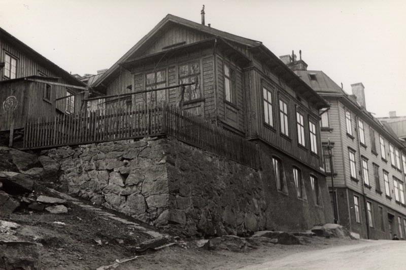 Klamparegatan 32, Majornas 5 rote, nr. 50B sett från nordost gavel mot öster. T.h. Klamparegatan 34 och längst upp t.v. Masthuggsliden 4, samma rote nr. 51.