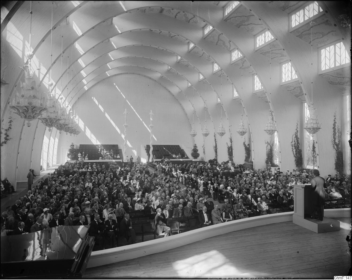 Albert Einstein håller sin Nobelföreläsning 11 juli 1923 vid Skandinaviska naturforskarkongressen i Kongresshallen på Liseberg under Jubileumsutställnngen.I publiken syns Gutsav V på främsta raden.
