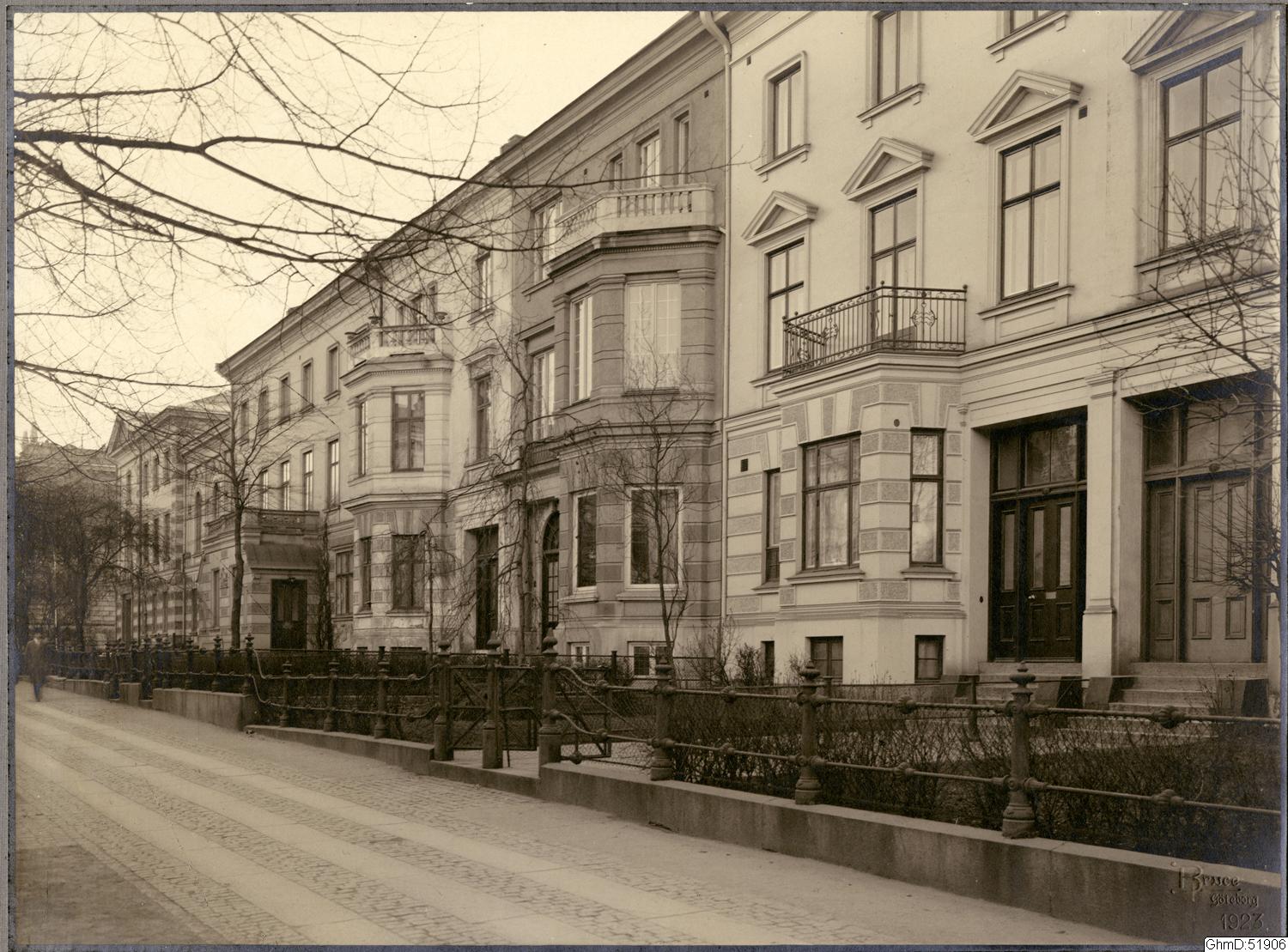Sträckningbild med Kungsportsavenyn 5 - 17, mot norr. Nummer 5 till höger. Radhus som även kallas Engelska kvarteret.