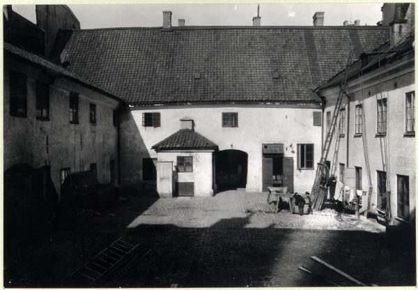"Gamla Stadshusets gård vid Gustav Adolfs torg." (citerat efter uppsats "Utblickar och strövtåg" av Sixten Strömbom ingående som del i svit betitlad "Natur och Byggnadshistoria i Göteborg"-- allt i Svenska Turistföreningens årsskrift 1917).