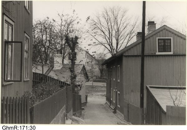 Lilla Gatans mynning mot Slottsskogsgatan. Situationen fr.v.: