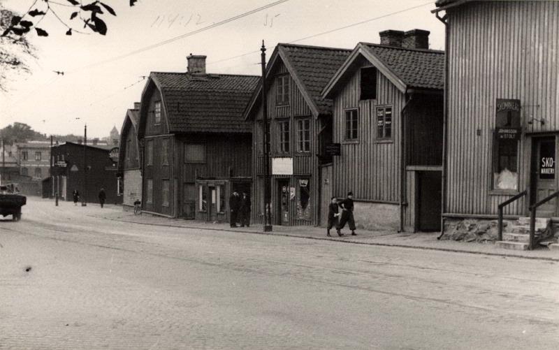 Fr.h. Karl Johansgatan 69 (del av och flygel), 71, 73 (under rivning) och 75. Skomakeri t.v.