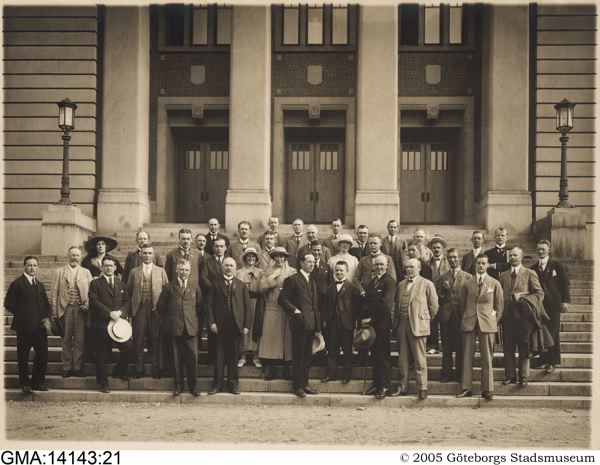 Jubileumsutställningen 1923. Kongresser, möten: Bankmannakongress.Fotot taget på Göteborgs Högskola trappa