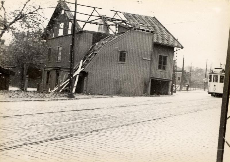 Huset Klippgatan 8 mot Karl Johansgatan sett fån sydväst.Huset under rivning. Hus vid f.d. Almänna Vägen.