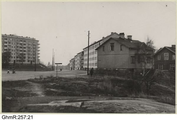 Eklandagatan, parti norrut sett från Södergränsområdet strax söder om Viktor Rydbergsgatans södra ändpunkt. Närmast t.h. Eklandagatan 74, därbakom (vitt hus), nr 72-70. T.v. Lemansgatan 8-10.