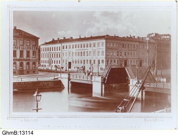Baeckströms påskrift å baks. av fotot ang. de båda fastigheterna i högerkanten: "R. o. sen. Edv. Dickson" [längst t.h.] samt "Ol. Wijk, sen. Wallentins [?]" [t.v. om föreg.]